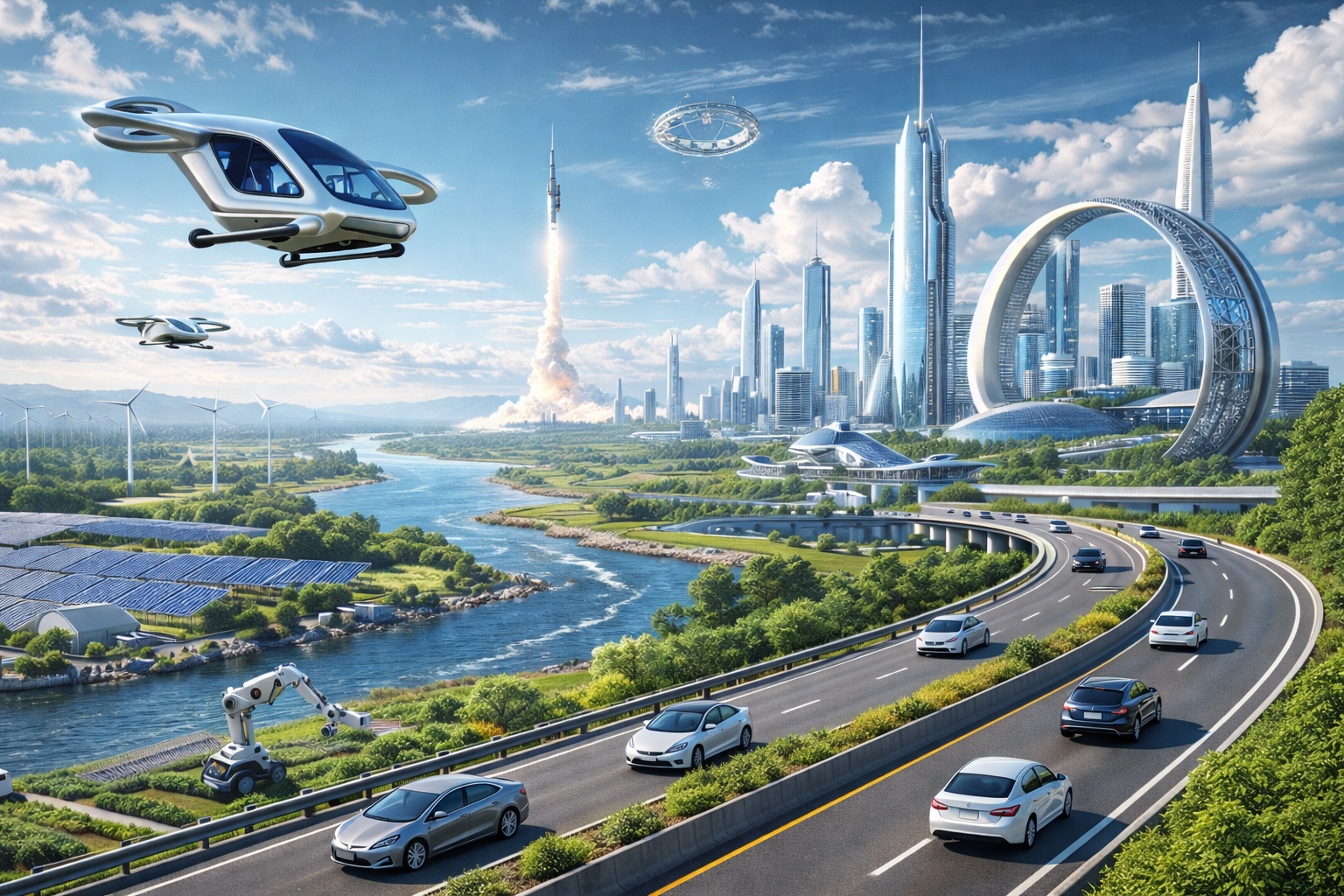 What strikes me most about the future isn’t the flying vehicles or the AI systems—it’s the tension between harmony and control. The version that feels hopeful is the one where intelligence (human and artificial) learns restraint, balance, and stewardship. Clean energy woven into landscapes. Infrastructure that adapts instead of dominates. AI as an assistant to human wisdom, not a replacement for it.